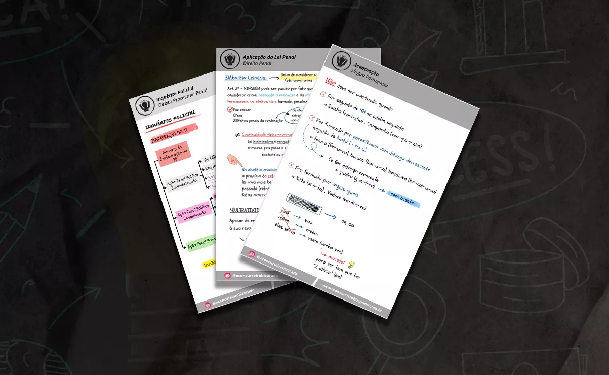 Estamos cansados de materiais extensos de 100, 200 páginas por aula, que não dão ênfase nos pontos cruciais de cada concurso. Por isso, criamos um conteúdo que vai direto ao ponto, focando no que realmente importa para sua aprovação.