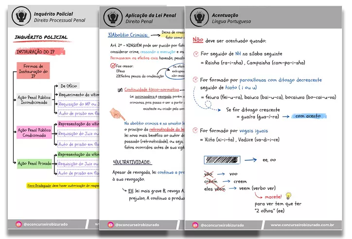Percebemos a necessidade dos alunos de terem um material de revisão conciso, mas que também pudesse ser aprofundado nos pontos realmente necessários. Estamos cansados de materiais extensos de 100, 200 páginas por aula, que não dão ênfase nos pontos cruciais de cada concurso. Por isso, criamos um conteúdo que vai direto ao ponto, focando no que realmente importa para sua aprovação.